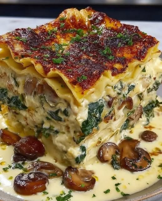 Creamy, Decadent, Effortless Cottage Cheese Mushroom Spinach Lasagna Bake