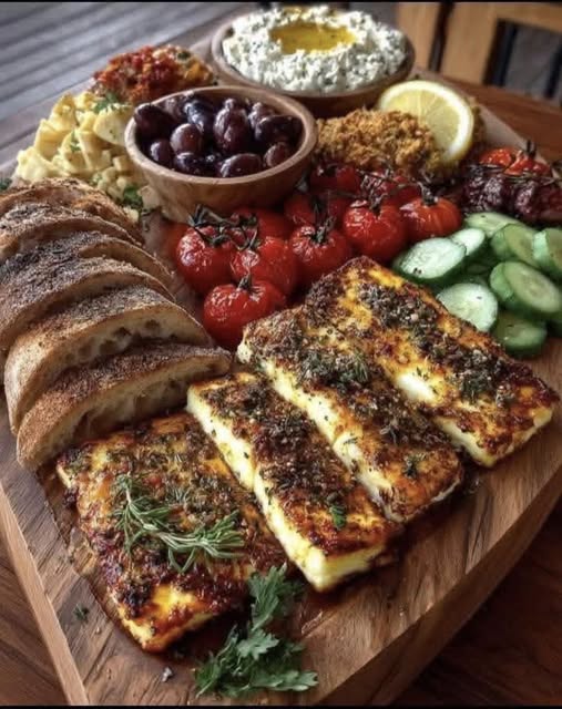 Rustic Mediterranean Bread and Halloumi Board